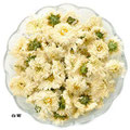 黄菊散热,白菊明目。菊花气味清香、凉爽舒适,味辛、甘、苦,微寒,归肺、肝经。现在市面上的菊花有黄、白菊两种,疏散风热宜用黄菊花,可防治风热感冒;平肝、清肝明目宜用白菊花,可用于头痛眩晕等症状。还有一种野菊花,其花朵较小较黄,花形也不是很好看。野菊花清热解毒的作用最强,对缓解生疮、牙痛、口臭都有效。
